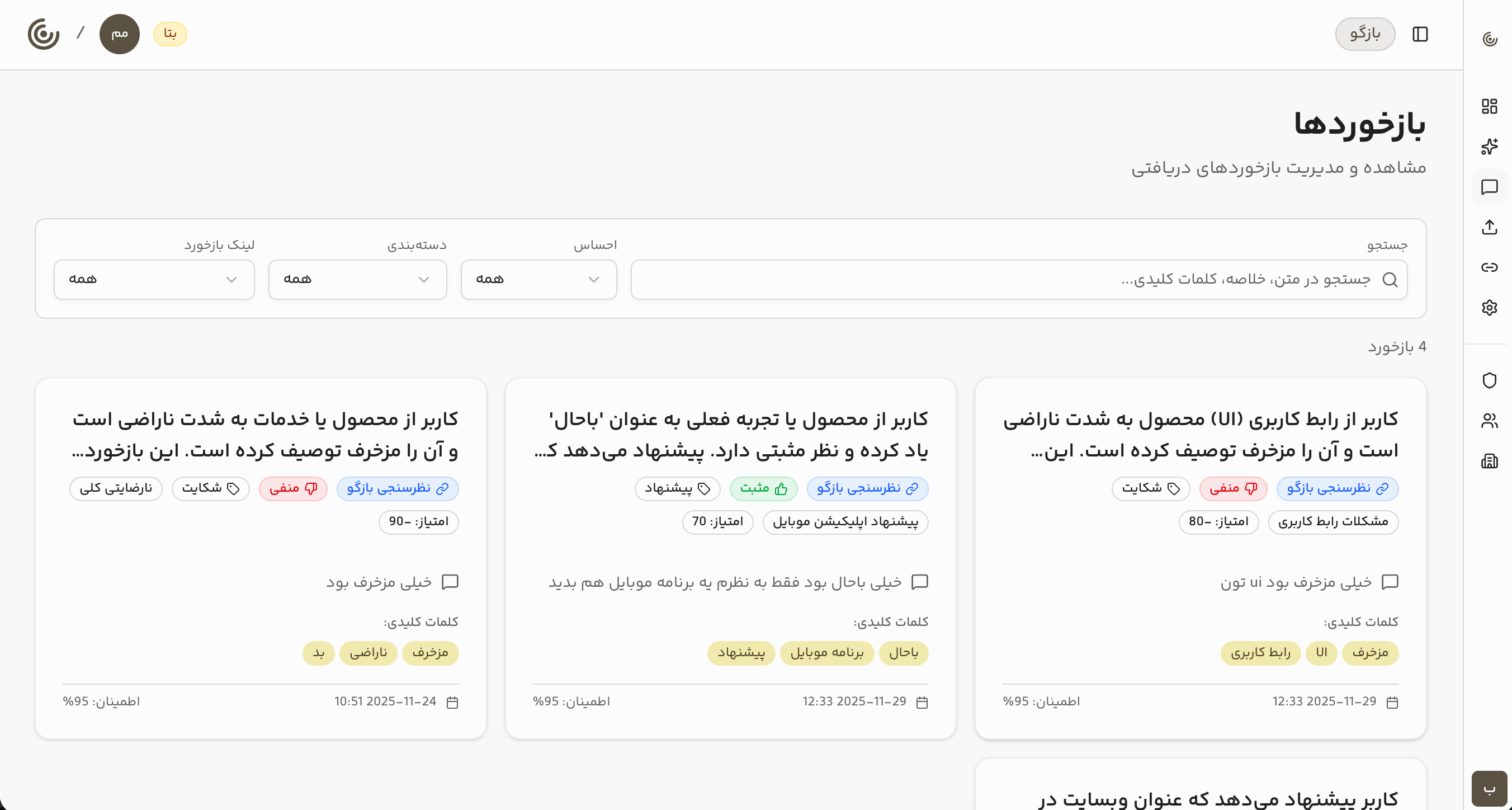 با بازگو، مدیریت بازخورد را سادهتر کنید و با هوش مصنوعی، بینشهای ارزشمندی از نظرات مشتریان خود کسب کنید